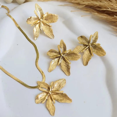 3pcs Fashion Gold-Tone Alloy Chain Necklace and Earrings Set