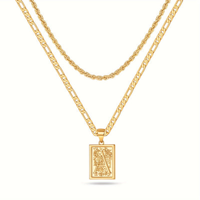 2pcs Initial Letter Necklaces & Chain Necklace, Jewelry Gifts For Men Women
