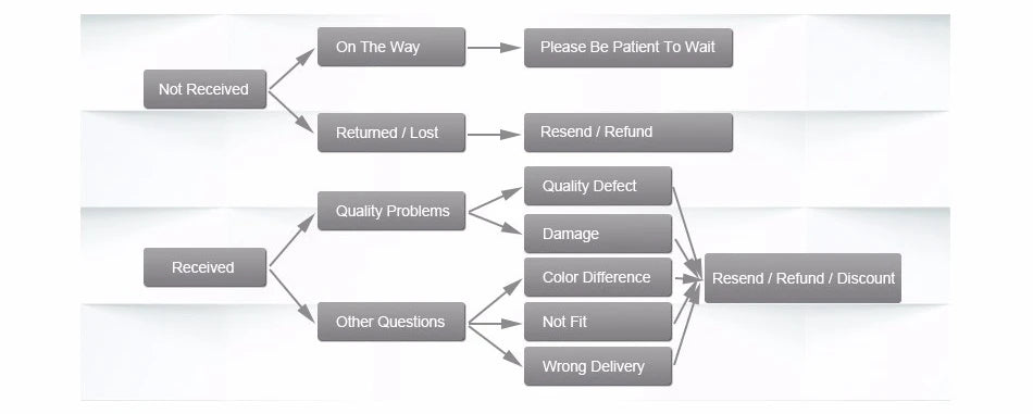 • Quality Problem   We will check every piece of products carefully before shipping, however some of them may get damaged during the transit. If you find any quality problem, please take a photo and contact us with 15 days after receipt, we will resend you a new product or refund your payment.